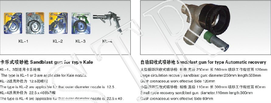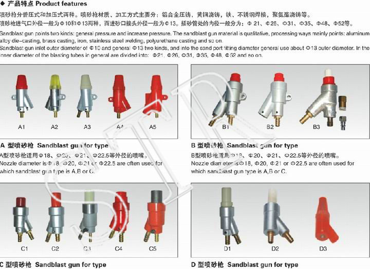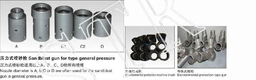 噴砂槍分普壓式和后加壓式三種。噴砂槍板材、生產制作方案常見分:鋁鎂合金壓鑄,紅銅澆鑄,鐵、鋁合金電弧焊接,聚安脂澆鑄等。