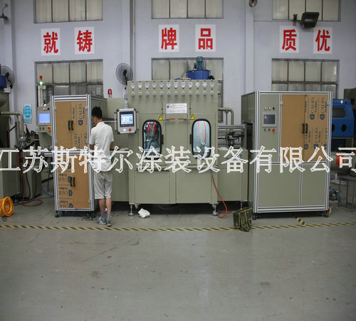 全自動玻璃水砂自動噴砂機由自動上料機、自動噴砂機和自動下料機三大部分組成:首先由自動上料機將附有兩組Tray盤Port可自動交換,需人工放Tray盤至LD Port, Tray盤定位后,移栽Arm開始取片,玻璃整列,再由移栽Arm直接將玻璃放置在載具Stg上,送入噴砂設備,當一個Tray port 取完后,會報警提醒人員裝載新的Tray盤,當空Tray盤滿杯后設備會自動報警通知人員取走空Tray盤,以此循環動作.然后到全自動玻璃水砂自動噴砂機,由人工自行調配一定的水砂比例后設備自動進行混合攪拌,自動上料機構抓取玻璃放到輸送同步帶上,進入噴砂機腔體進行噴砂,噴砂作業結束后,進入水刀處進行噴淋,噴淋結束后由風刀進行吹干。吹干后移動至下料機移栽位置,由移栽將玻璃抓取至下料機FORK上,以此循環。噴砂、清洗、吹干區域有擋邊防止工件位移。最后自動下料機將附有兩組CST Port可自動交換,需人工放空的CST至UnLD Port, CST翻轉90°后,氣缸機械定位,由移栽arm從治具上取玻璃放置Fork上,送入CST, CST Port內的基板利用Fork方式由最高層開始放片,Fork 真空感知Sensor/玻璃光纖sensor OFF后,Fork自動退回到等待位置,以此循環。當CST裝滿后,設備會報警提示人員將CST取走并裝入空的CST。