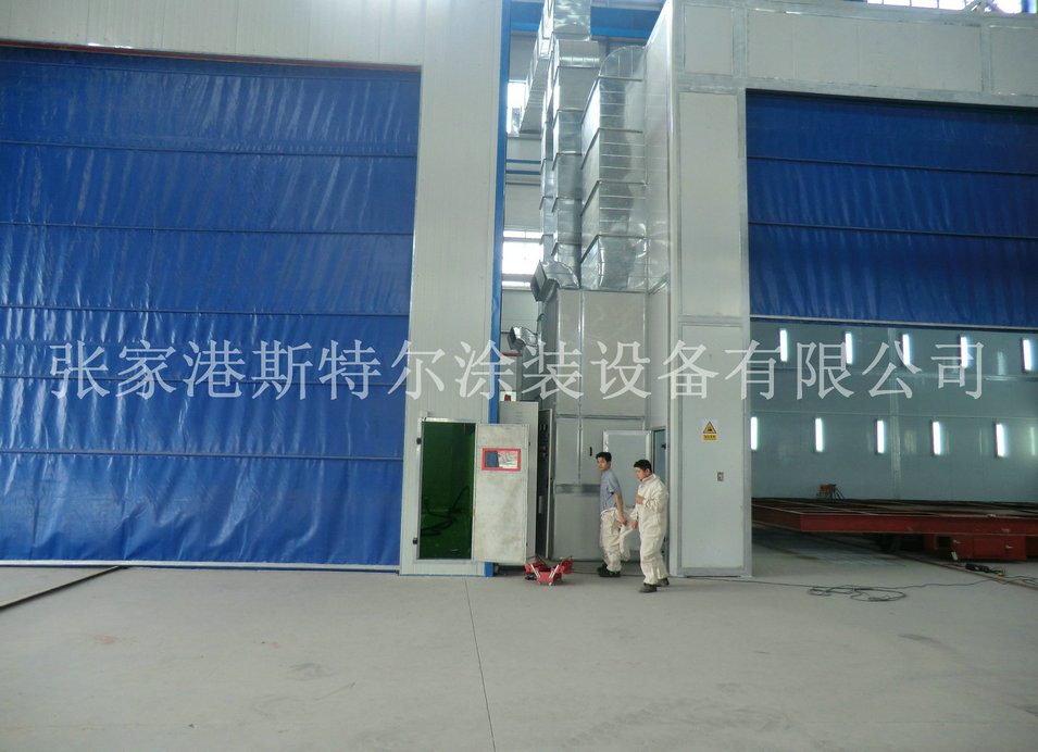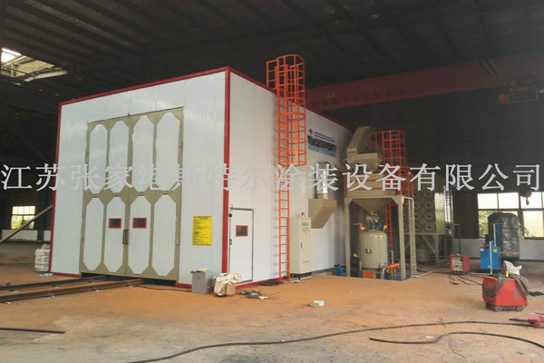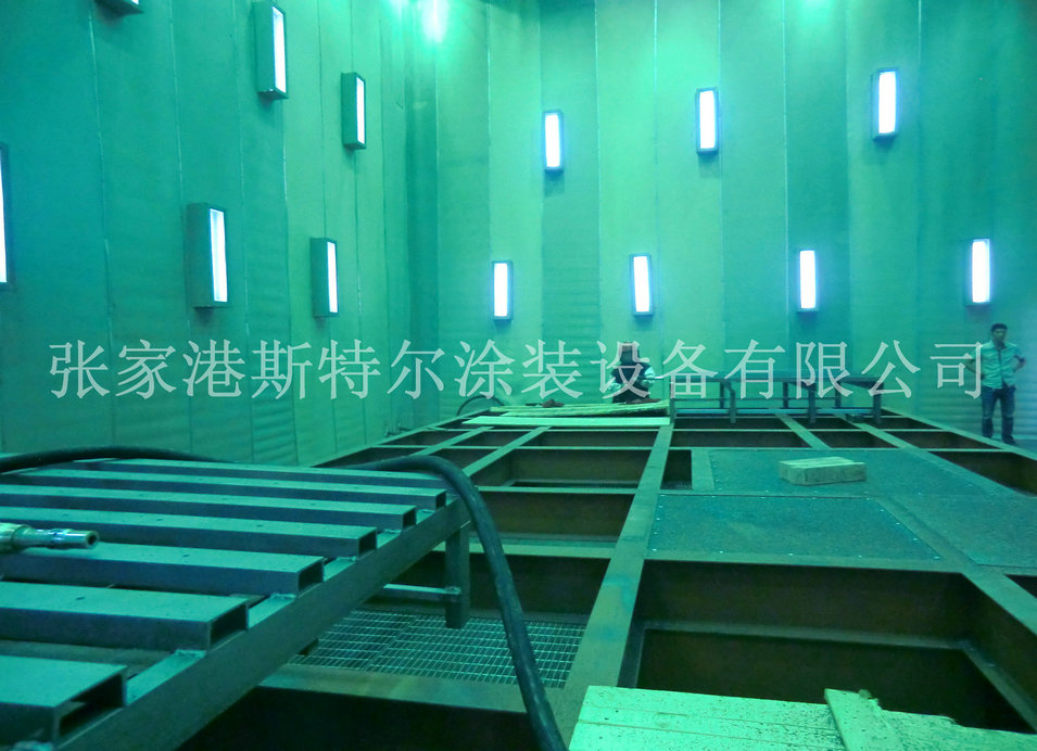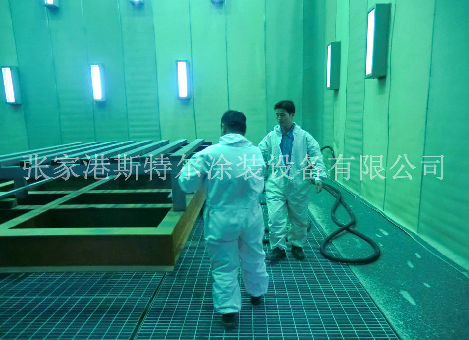 根據客戶要求及工件尺寸,房體工作尺寸設計為18x6x6.5m。本噴砂房體按照100mm方管做基本性體系結構,外部按照50方管做外部斜撐,外部鋪2mm角鋼及3mm朔膠板,里邊壁墻按照50mm厚彩鋼壓型板夾心板夾心板生產業,外型美觀大氣、安裝程序方便快捷的、防銹實用。彩角鋼夾心層為聚苯丁二烯發泡朔膠,與長規用純角鋼生產的