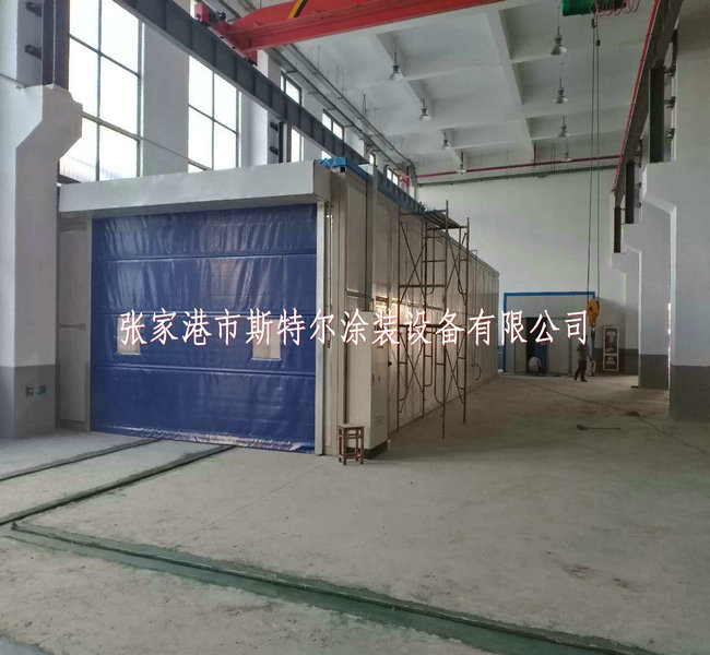 噴鋅房規格16X5.8X3.5m,墻(qiang)磚(zhuan)選擇10#方管當做骨架,內嵌式75mm巖(yan)棉彩鋼板(ban)。院門(men)為電動增強(qiang)式,末端(duan)使(shi)用顆(ke)粒狀物(wu)過濾系統墻(qiang)。